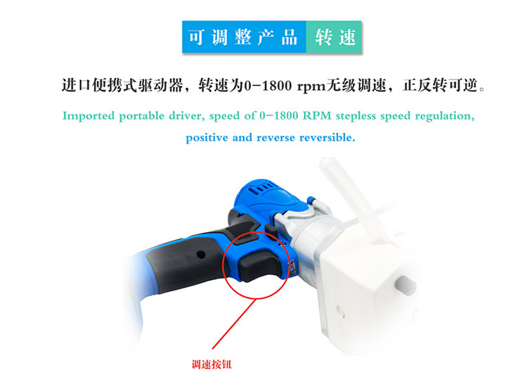 5.便攜式驅(qū)動(dòng)器,轉(zhuǎn)速為0-1800 rpm無(wú)*調(diào)速,正反轉(zhuǎn)可逆