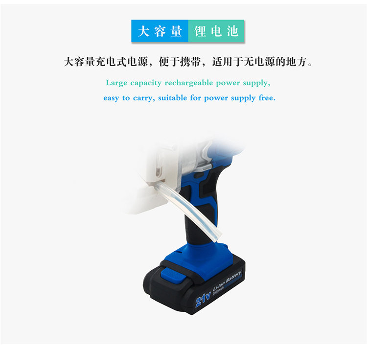 兩塊21v鋰電池,比12v的更強(qiáng)勁,連續(xù)工作的時(shí)間更長(zhǎng)。 |