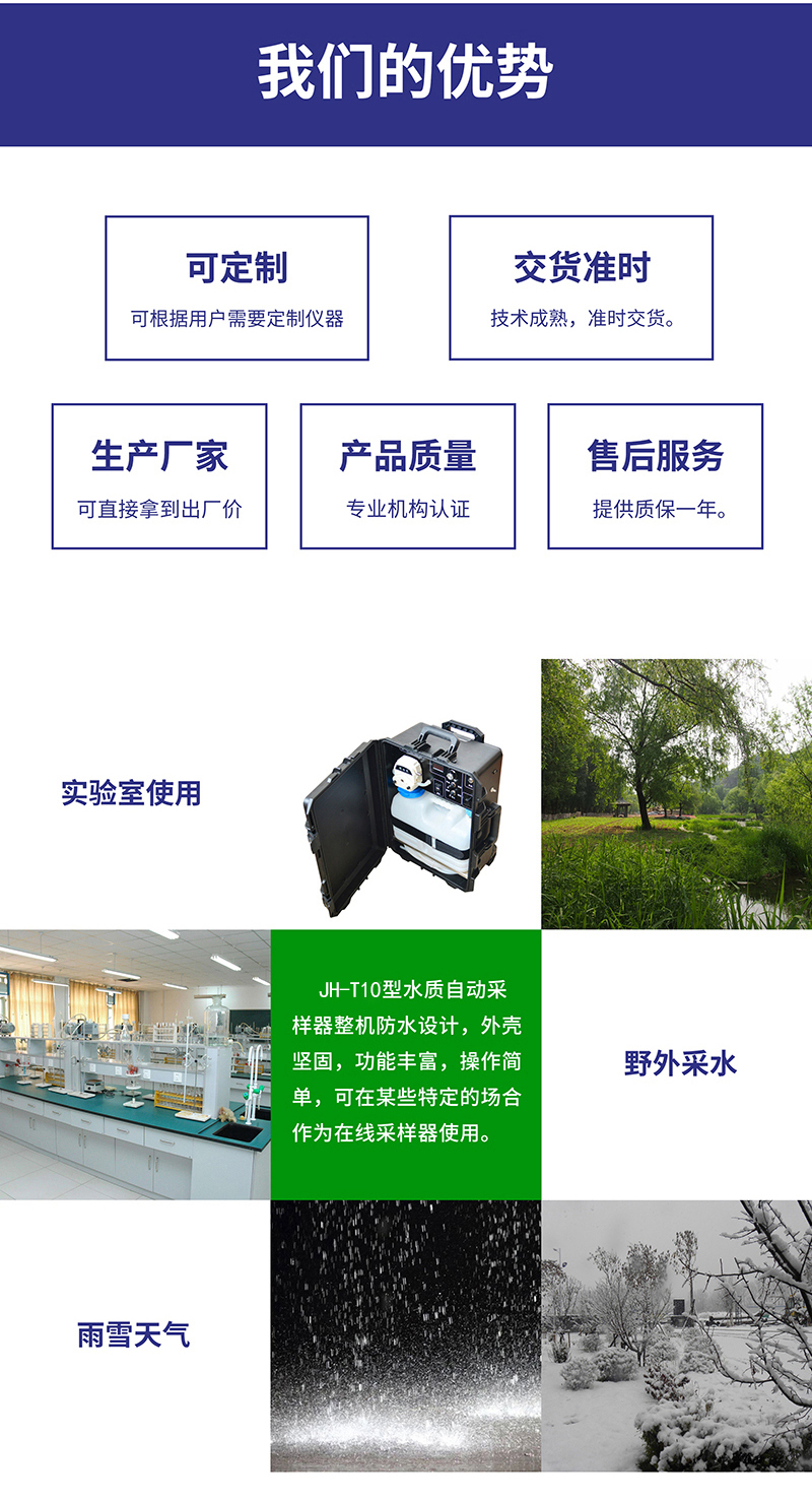 JH-T10水質(zhì)自動(dòng)采樣器整機(jī)防水設(shè)計(jì),外殼堅(jiān)固,功能豐富,操作簡(jiǎn)單,可全天候應(yīng)用,無(wú)需有復(fù)雜的專業(yè)知識(shí),該產(chǎn)品非常方便用戶便攜應(yīng)用,亦可在某些特定的場(chǎng)合作為在線采樣器使用,性價(jià)比高,滿足用戶的應(yīng)用需求。