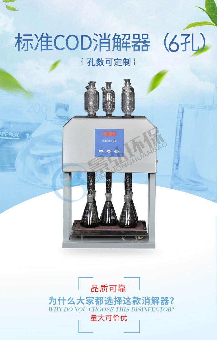 儀器的化學(xué)溶液配制、操作和COD的計(jì)算遵照GB11914-89,低于50mg/L的COD水樣可通過稀釋滴定劑和氧化劑來提高精確度,高于1000mg/L的COD水樣,可通過水樣的比例稀釋來完成測定。