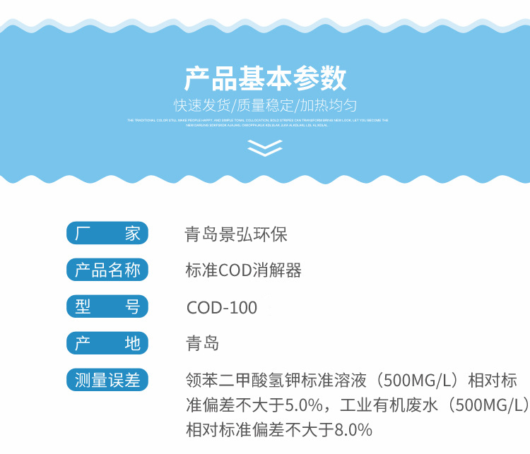 COD-100型COD自動(dòng)消解回流儀遵循了標(biāo)準(zhǔn)(ISO)和國家標(biāo)準(zhǔn)(GB)的基本原則,保證回流加熱2小時(shí)的消解操作,確保分析結(jié)果的準(zhǔn)確性。