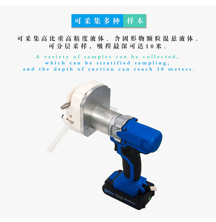 6.可采集高比重高粘度液體、可采集含固形物顆粒混懸液體、可分層采樣,吸程*深可達(dá)8米。