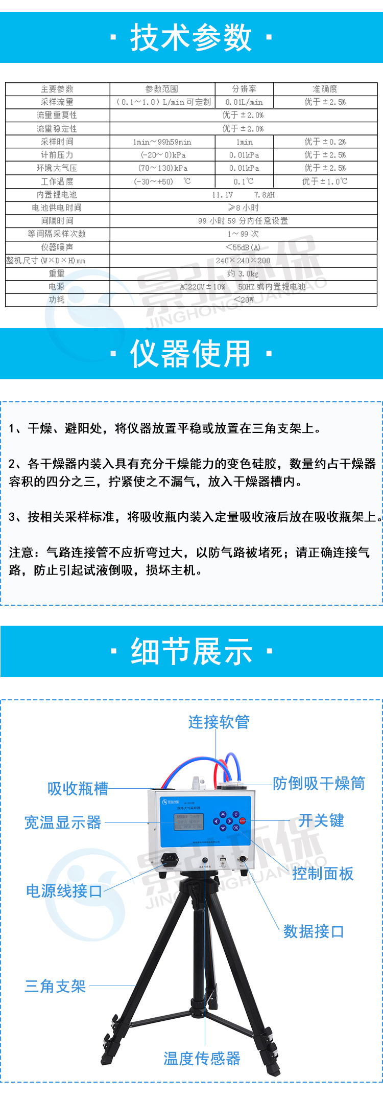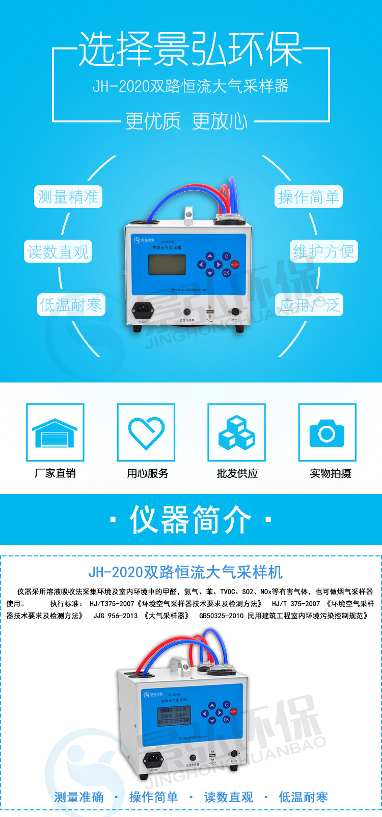 JH-2020型恒溫恒流連續(xù)自動(dòng)大氣采樣器應(yīng)用溶液吸收法連續(xù)24小時(shí)恒溫、恒流采集環(huán)境空氣中的SO2、NOx等各種污染性氣體。適用于環(huán)境監(jiān)測(cè)、環(huán)境評(píng)價(jià)、衛(wèi)生、安監(jiān)、軍事、科研、教育等部門用于氣態(tài)物質(zhì)常規(guī)監(jiān)測(cè)。