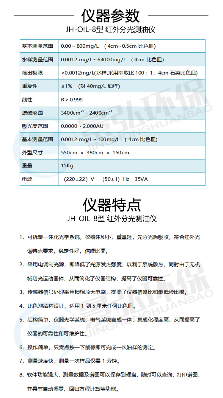 2.適用飲用水,地表水,地下水,污水中油類濃度監(jiān)測;