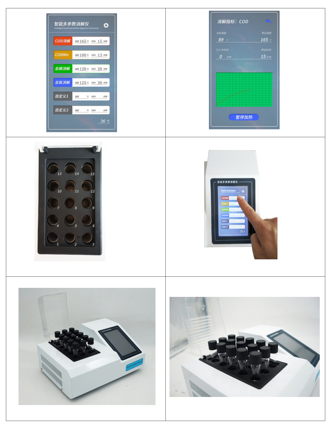 2.一鍵式啟動(dòng)消解,儀器預(yù)設(shè)常用消解指標(biāo)參數(shù)(如COD、總磷、總氮等),一鍵選擇相應(yīng)指標(biāo)進(jìn)入消解操作。