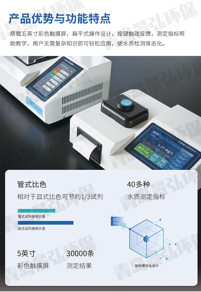 6、采用消解比色一體管,使水樣測定過程簡單、快速、安全,測量結(jié)果準(zhǔn)確。