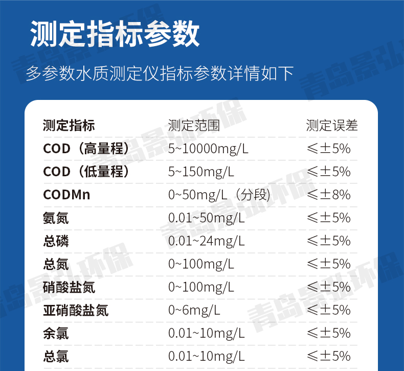 ② 測定范圍:0.01~50mg/L (超量程可稀釋測量);